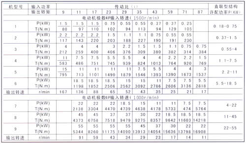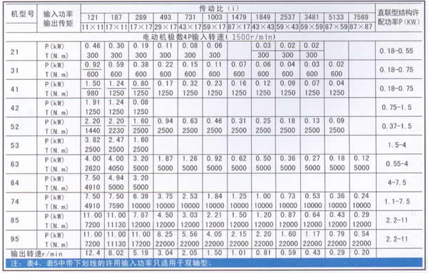 1.5一级减速许用功率及转矩(K=1)